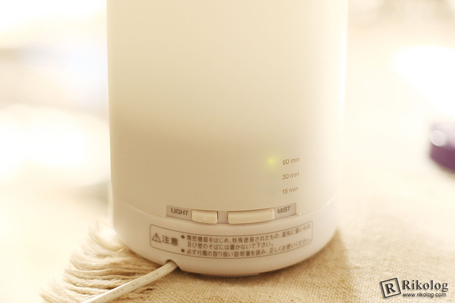 無印のアロマディフューザーを購入した理由は、デザインや値段、機能面(LED照明・タイマー付きで夜寝る時も安心)がグッドなこともあるんだけど、オイルバーナーと違って超音波で香りを拡散させる構造なので、エッセンシャルオイル本来の香りを損なうこと無く楽しめるというのは一番の購入理由かな。また、とにかく香りが広がるのが圧倒的に早いです。スイッチを入れてすぐに芳香浴が楽しめます。これはとても嬉しいですね〜。
