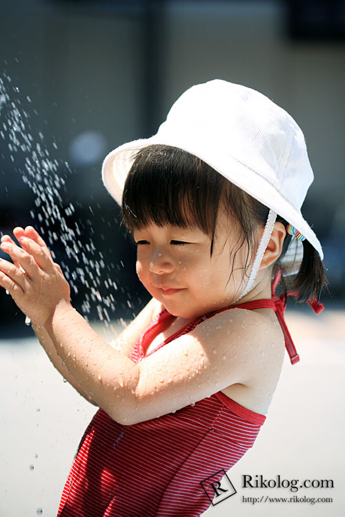 しかし、真夏の強い日差しの中で撮る原色に近い水着とプールの青い色のコントラストが目に染みますね〜。カメラも同じで、こういうコントラストの強い環境下で撮ると色が転んでしまったり、飛んでしまったりと大変。設定(感度とか、明るいレンズを使用した時等)によっては明るすぎてシャッタースピードが追いつかず、白く飛んでしまうこともあるので注意が必要ですね〜。