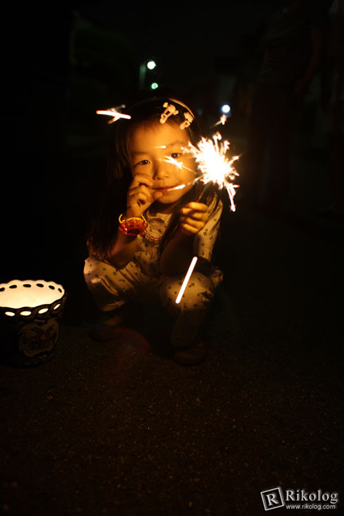 ここのところ、仕事やプライベートが忙しかったこともあり、すっかりカメラや写真から遠ざかっていたので、なんとなく撮影の勘が鈍っていて、夜に花火を持った姪っ子を撮るのに結構苦労しました。汗